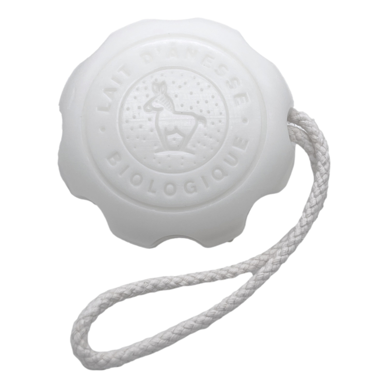 massage zeep ezelinnenmelk met touw 150 gramEen stevige ezelinnenmelk zeep met een stoer ophang-touw , geeft een heerlijke massage onder de douche of in het bad. Is zeer verrijkend voor je huid.