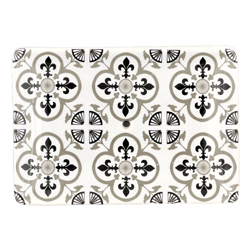 Seifenschale Fleur de Lys Schwarzgrau model 80geeignet für unsere 125 gram Seife (Ohne Seife),mit Wasserabläufloch Keramik