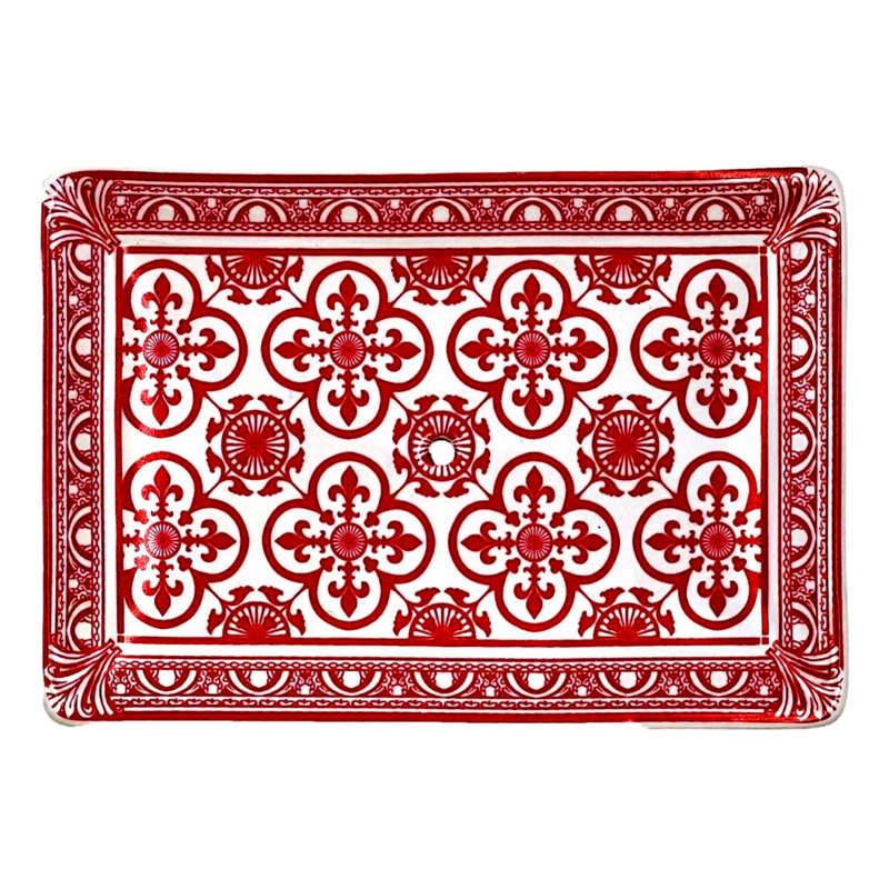 Seifenschale Fleur de Lys Rot model 86Geeignet für unsere 125 gram Seifen (Ohne Seife),mit Wasserabläufloch. Keramik